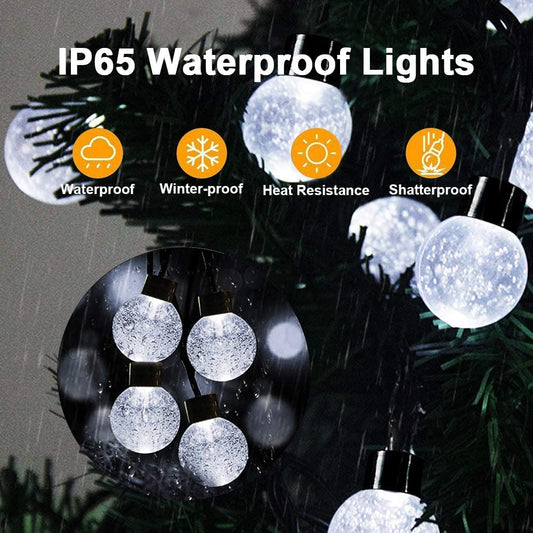 Chipark Solar String Lights Garden, 39Ft 100 LED Outdoor/Indoor Crystal Balls Fairy Lights Solar Powered 8 Modes Waterproof Decorative Lighting for Party, Home, Festival, Christmas(Cool White) [Energy Class A+++]