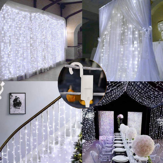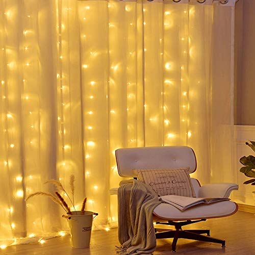 300 LED Curtain Lights, USB Window Lights, 3m x 3m 8 Modes Remote Control Fairy Light Waterproof LED Copper String Lights for Outdoor Indoor Wedding Party Garden Bedroom Decoration, Warm White